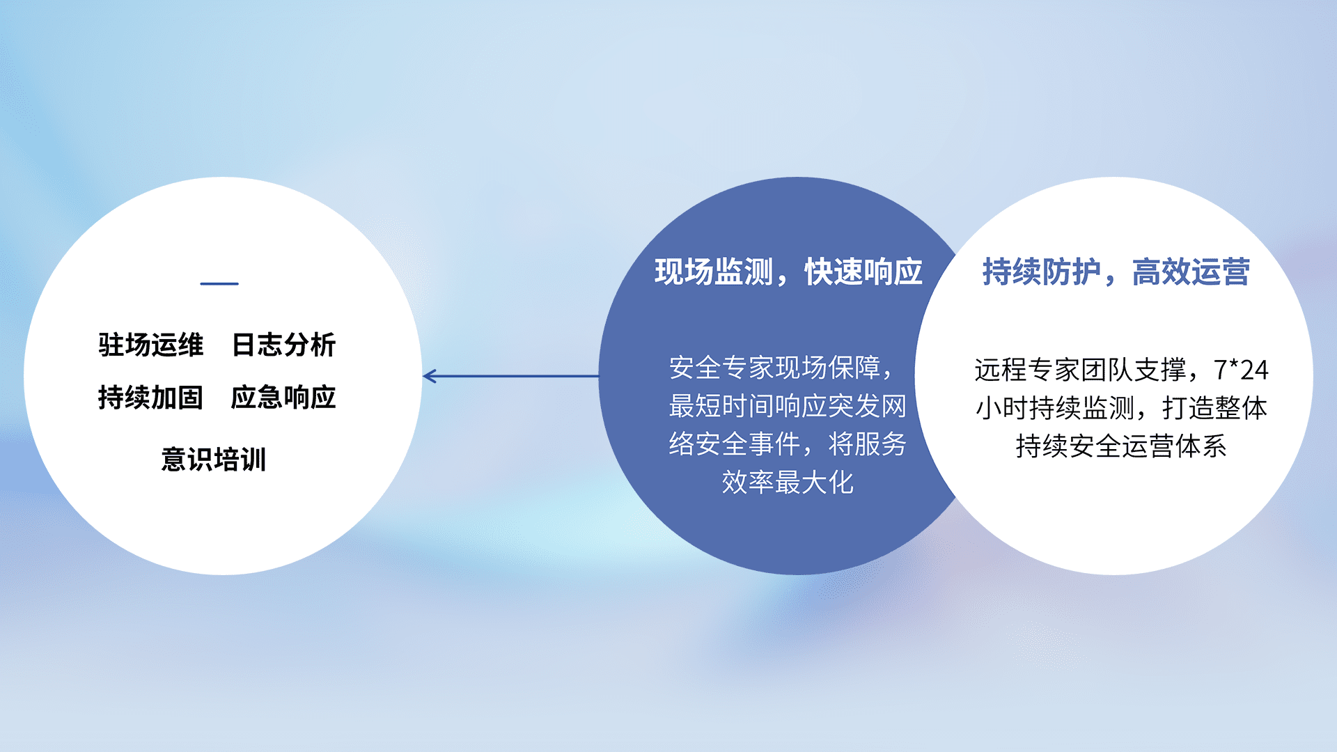 针对客户行业特性,,提供专属的一站式安全管理服务,,,,帮助客户全面感知网络空间威胁,,,通过安全专家的线上、、线下防护支持,,,实现风险闭环,,,将安全保障常态化,,为客户打造常态化安全运维运营服务。。